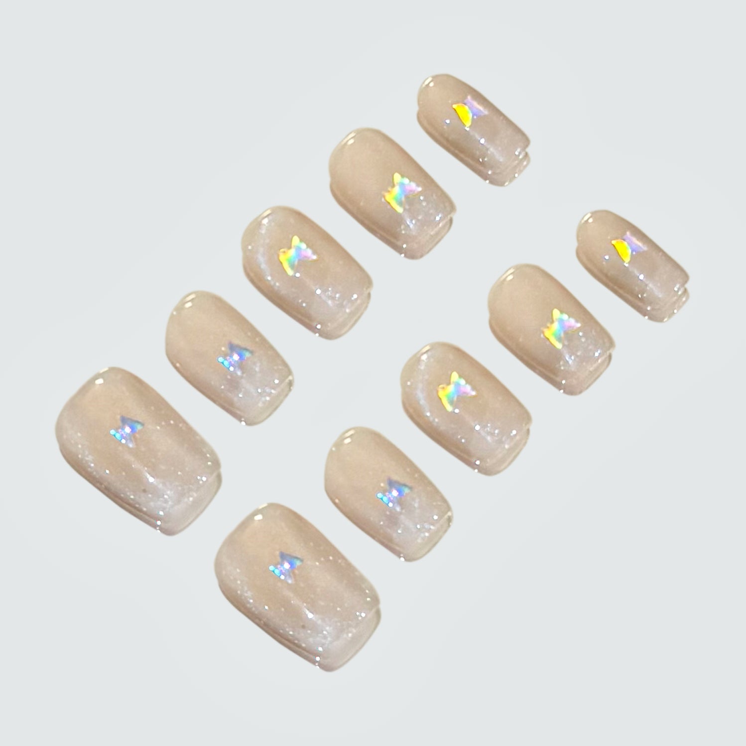 Put a dot of glue on the fake nail near the cuticle area, A small dot is all you need! Align the press-on nail with your natural nail, place it just above the cuticle and press down onto the nail bed for 10-15 seconds.