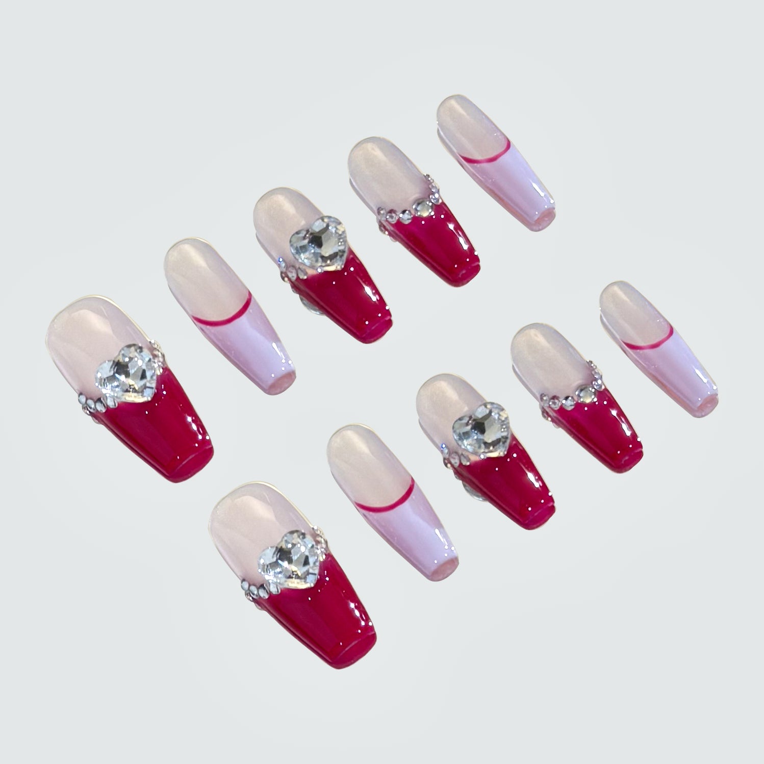 Put a dot of glue on the fake nail near the cuticle area, A small dot is all you need! Align the press-on nail with your natural nail, place it just above the cuticle and press down onto the nail bed for 10-15 seconds.