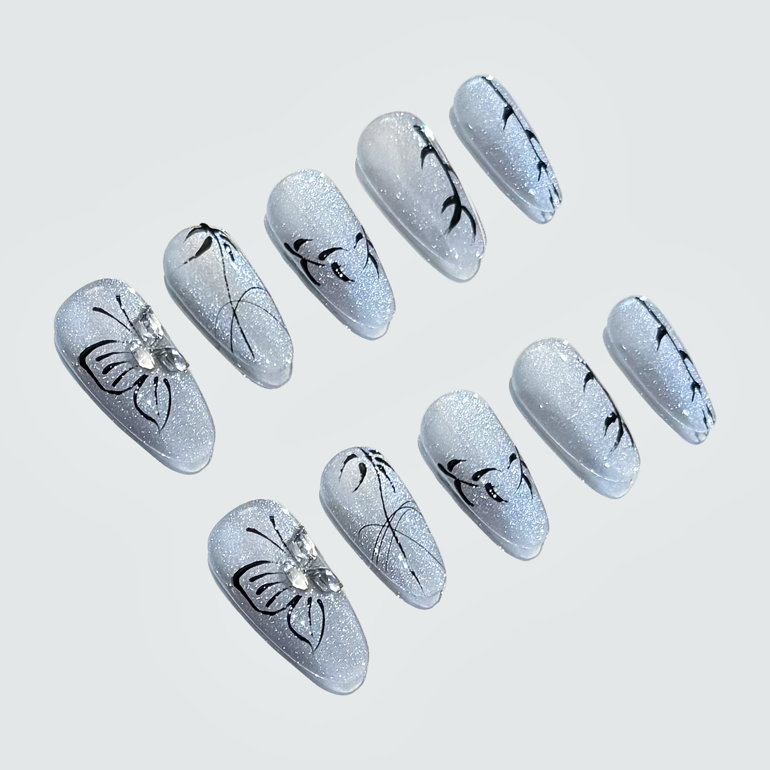 Put a dot of glue on the fake nail near the cuticle area, A small dot is all you need! Align the press-on nail with your natural nail, place it just above the cuticle and press down onto the nail bed for 10-15 seconds.