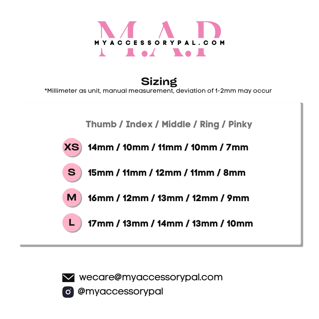 *If your size is in between, we recommand you go for the bigger size(You can slightly file the nail tips if needed)