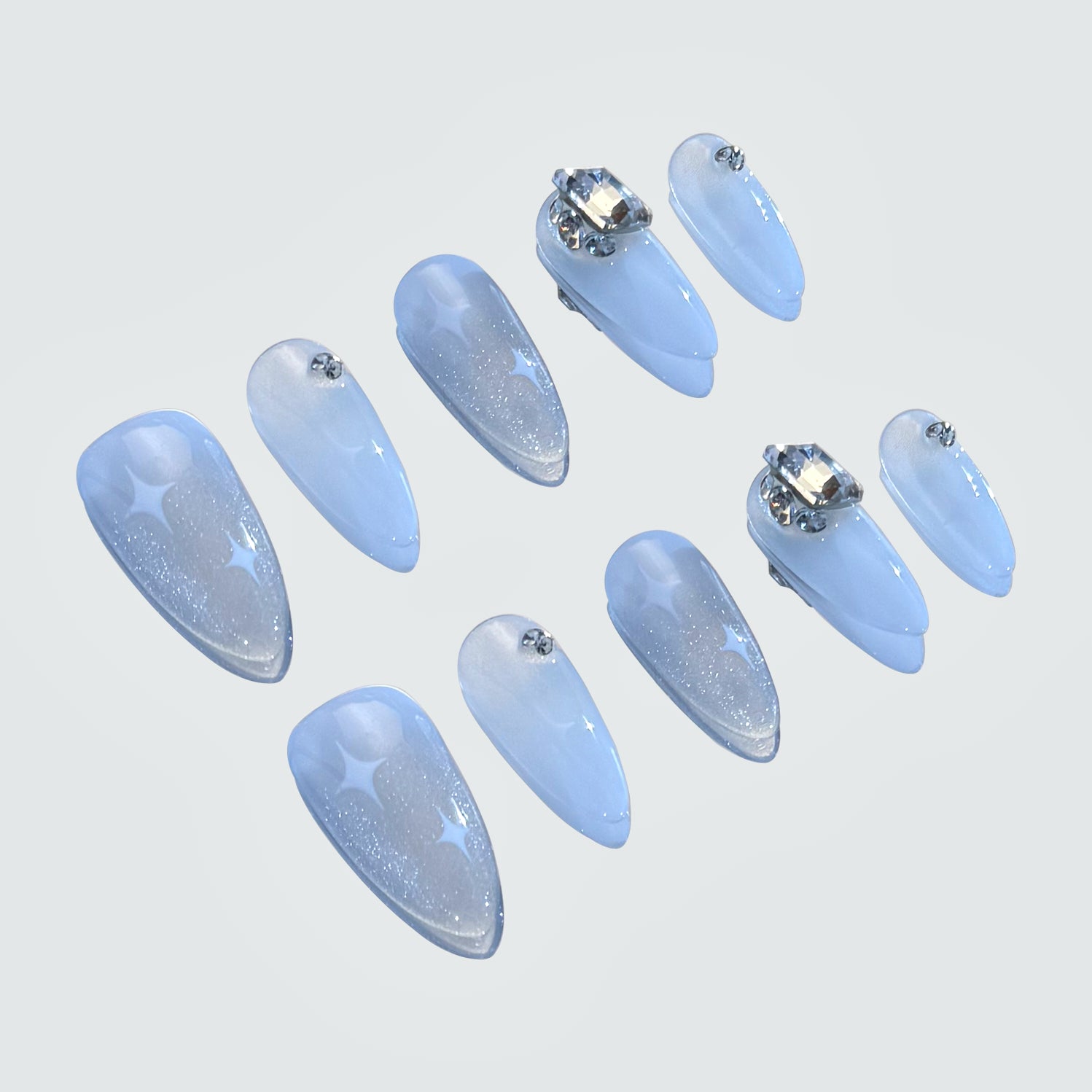 Put a dot of glue on the fake nail near the cuticle area, A small dot is all you need! Align the press-on nail with your natural nail, place it just above the cuticle and press down onto the nail bed for 10-15 seconds.